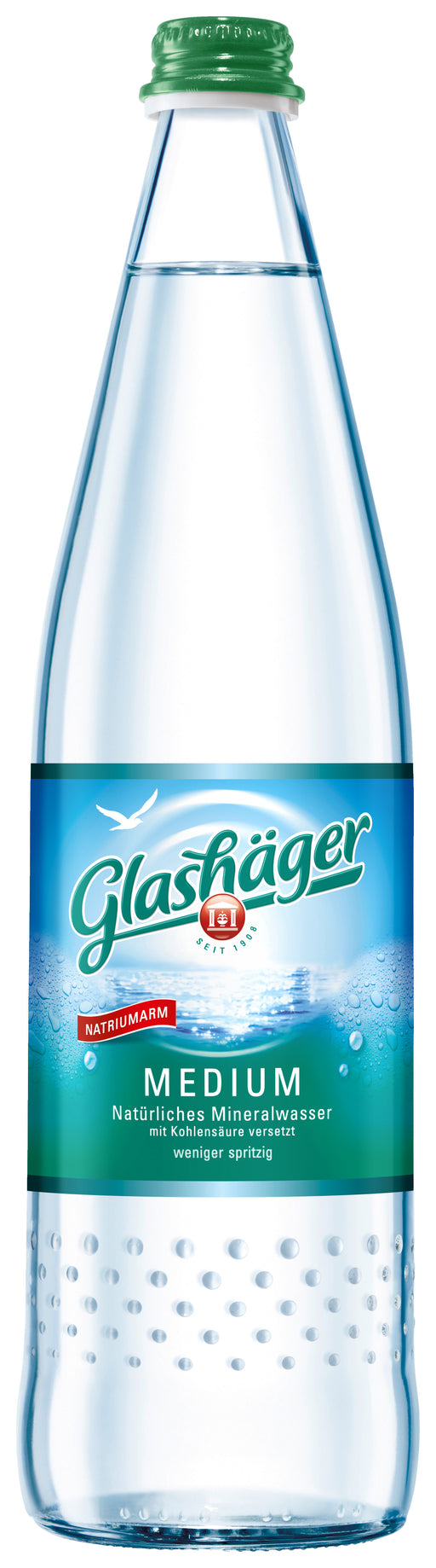 Weniger Kohlensäure, aber volle Erfrischung: Das ist Glashäger Medium. Leicht spritzig und angenehm rund im Geschmack. Natürlich mit der einzigarti...